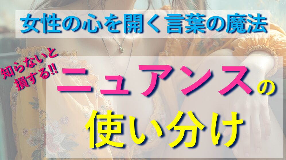 今回は「女性の心を開く!言葉のニュアンスの使い分け」について、じっくり解説していきます。
